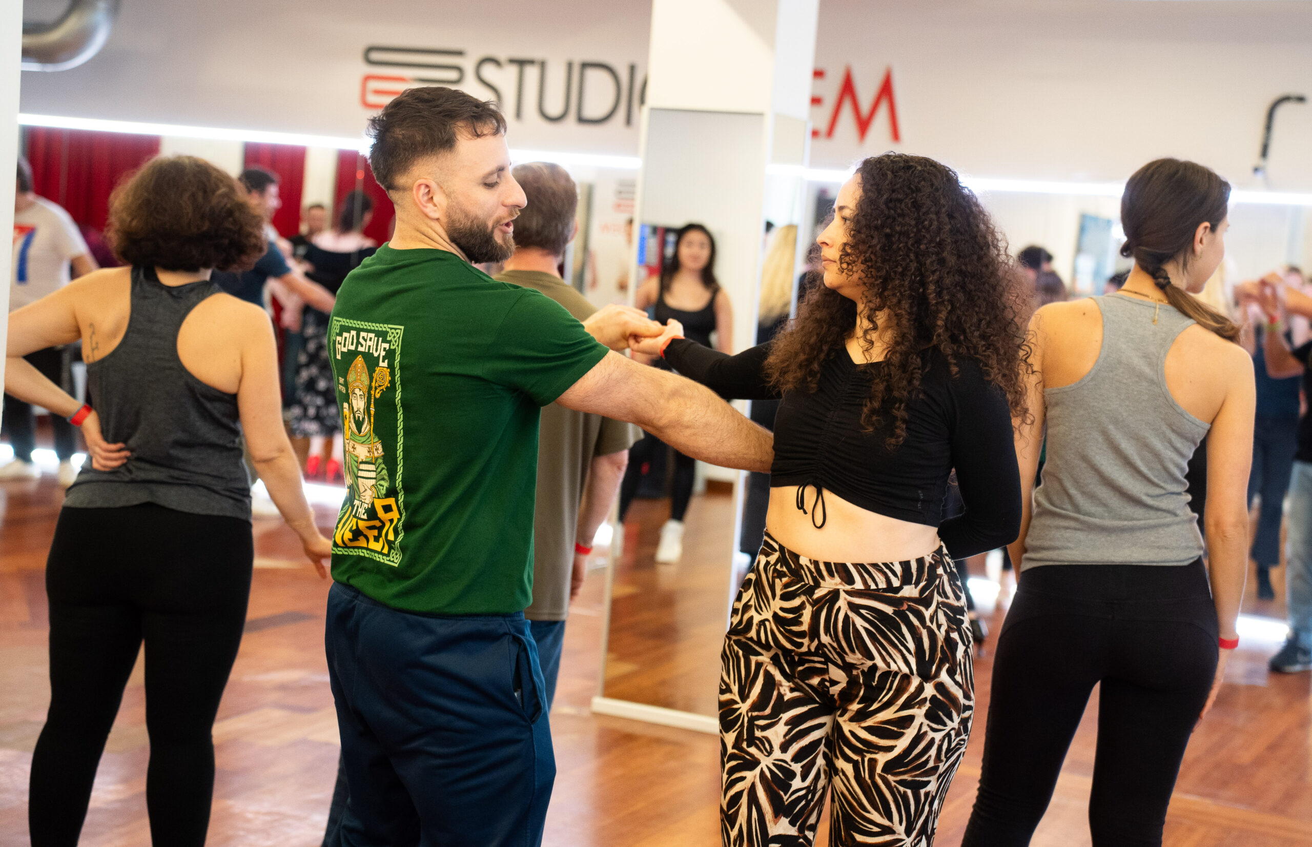 Nella seconda parte del workshop, tutti i partecipanti si sono riuniti per una sessione di rueda de casino, uno degli elementi più rappresentativi della salsa cubana. Attraverso figure dinamiche e cambi di partner, i danzatori hanno potuto mettere in pratica musicalità, coordinazione di gruppo ed energia collettiva, vivendo appieno lo spirito sociale e festoso della danza cubana.